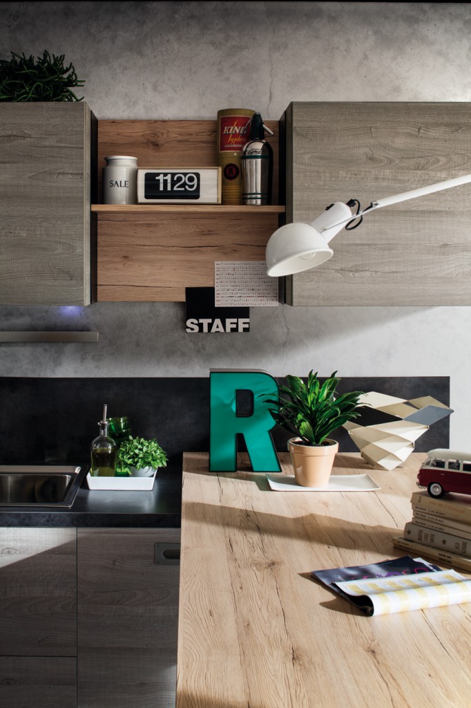 Sempre attuale e decorativo il tema del lettering; che siano lettere “strappate” a una vecchia insegna o acquistate ad arte, basta poco per dare un tocco cosmpopolita e un po’ street anche alla cucina.