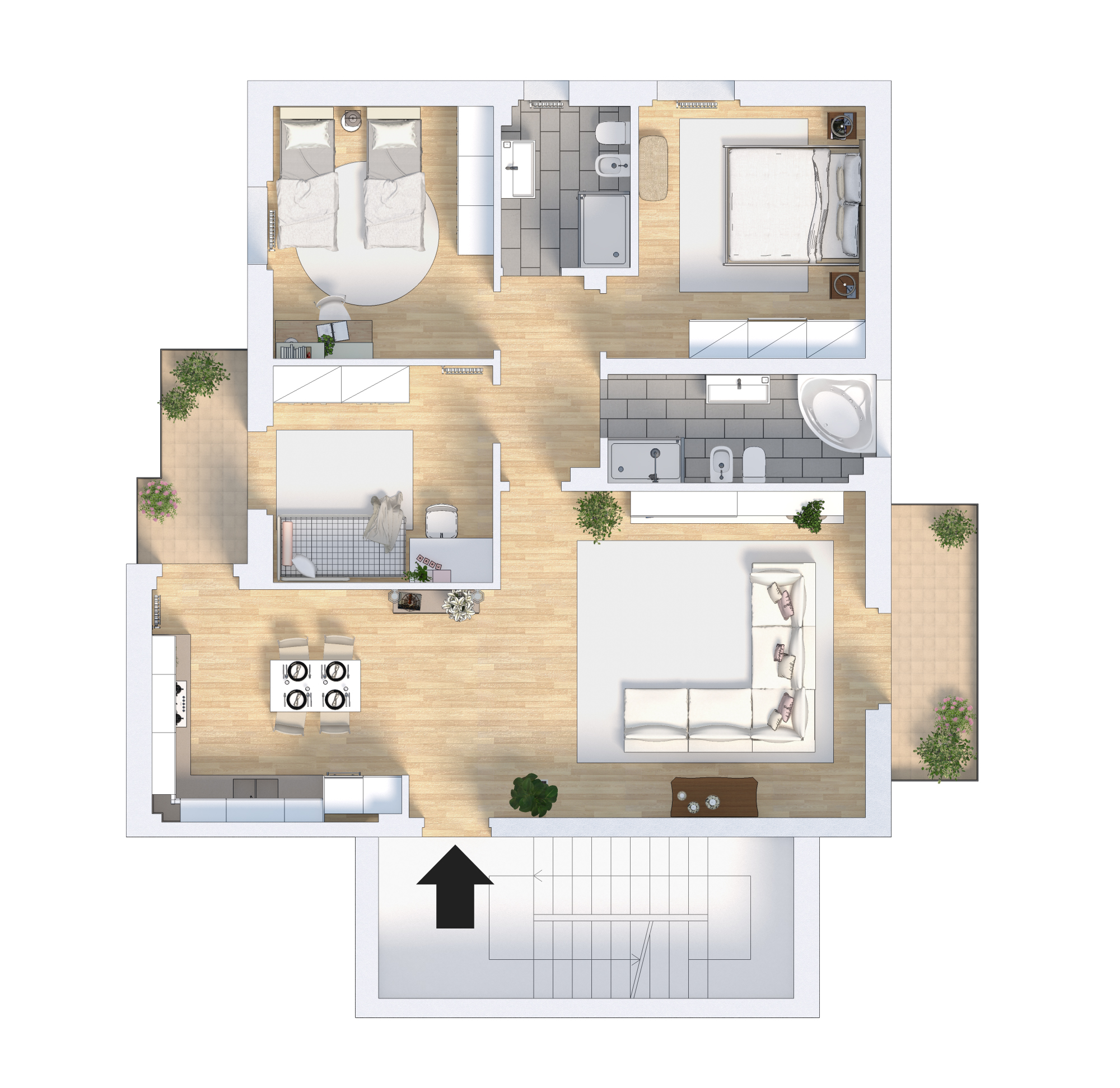 La tipologia di Cliente per la quale è stato pensato questo appartamento (Cliente Target) è una famiglia dal gusto classico e dalla vita intensa, con un figlio già “grandicello”, in età scolare. L’appartamento così ristrutturato è stato veduto in tempi record!