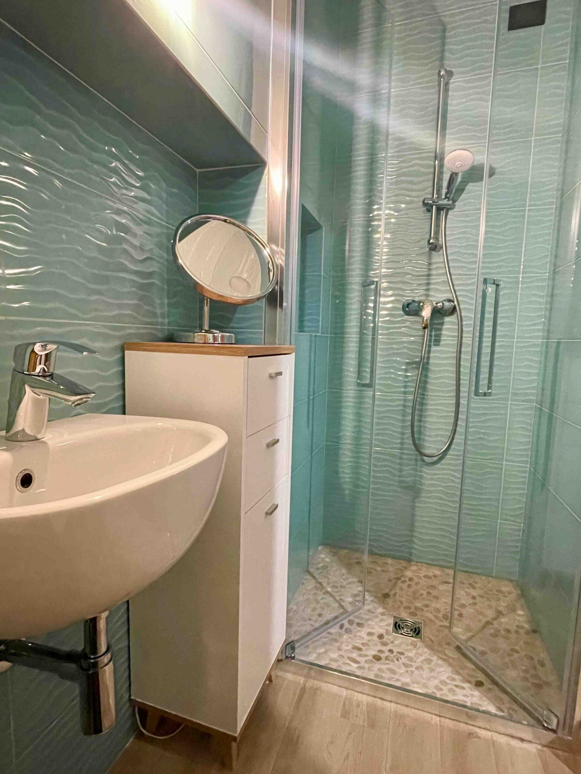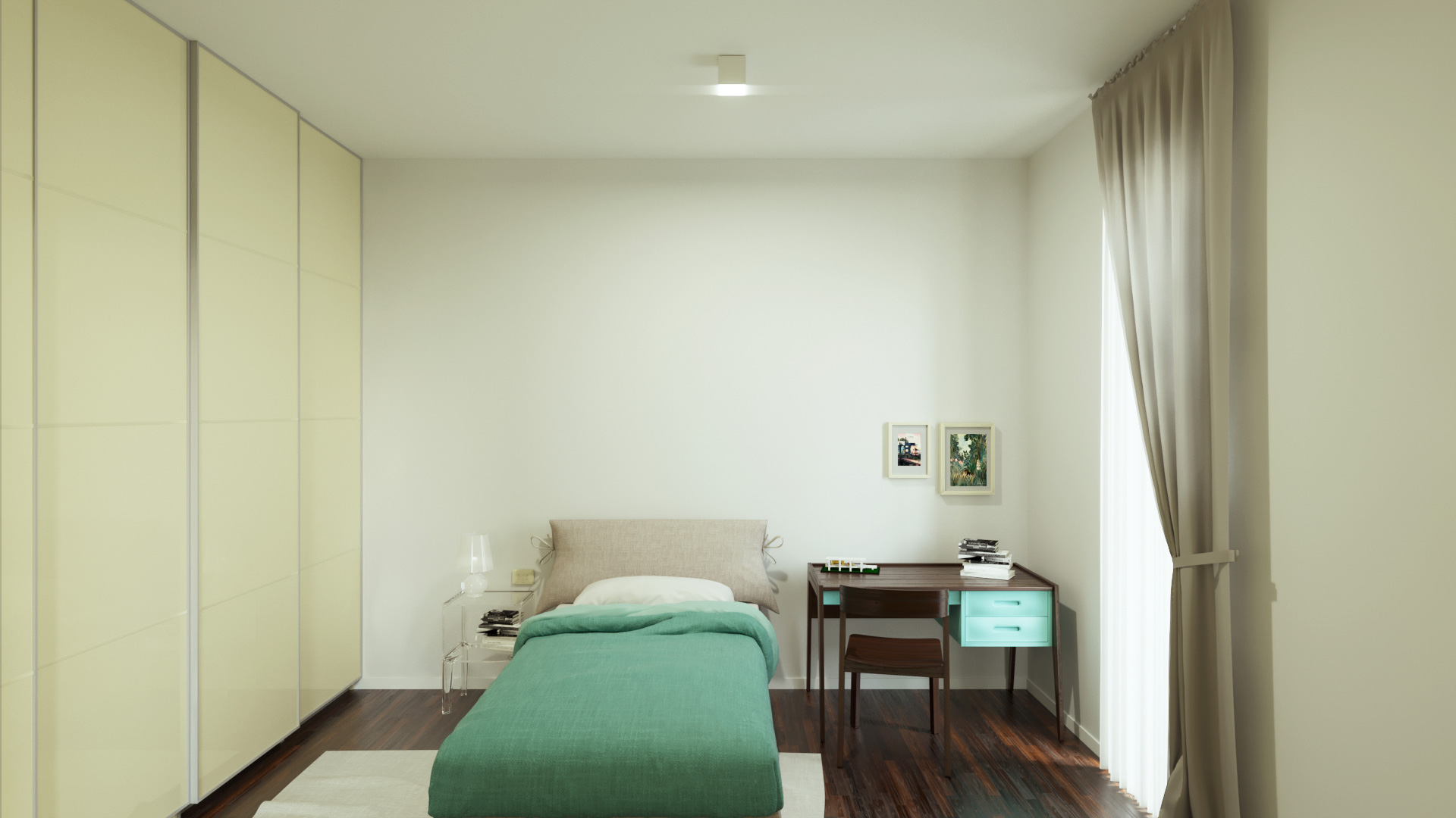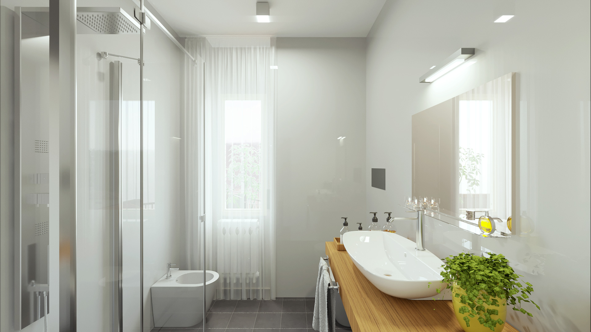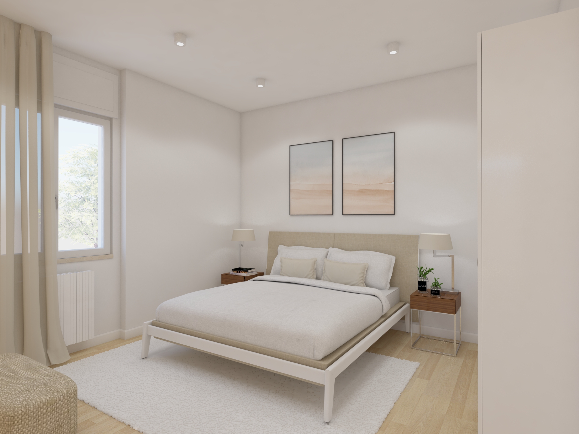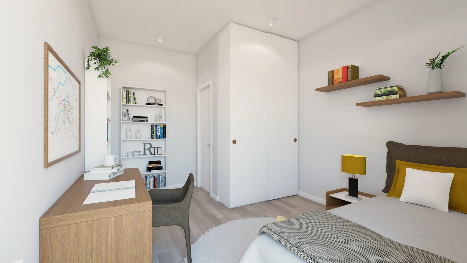 La suddivisione degli spazi, la completa nuova posa di impianti e la qualità delle finiture lo hanno trasformato in un prezioso centralissimo trilocale di charme dotato di piccola cabina armadio e bagno en suite.