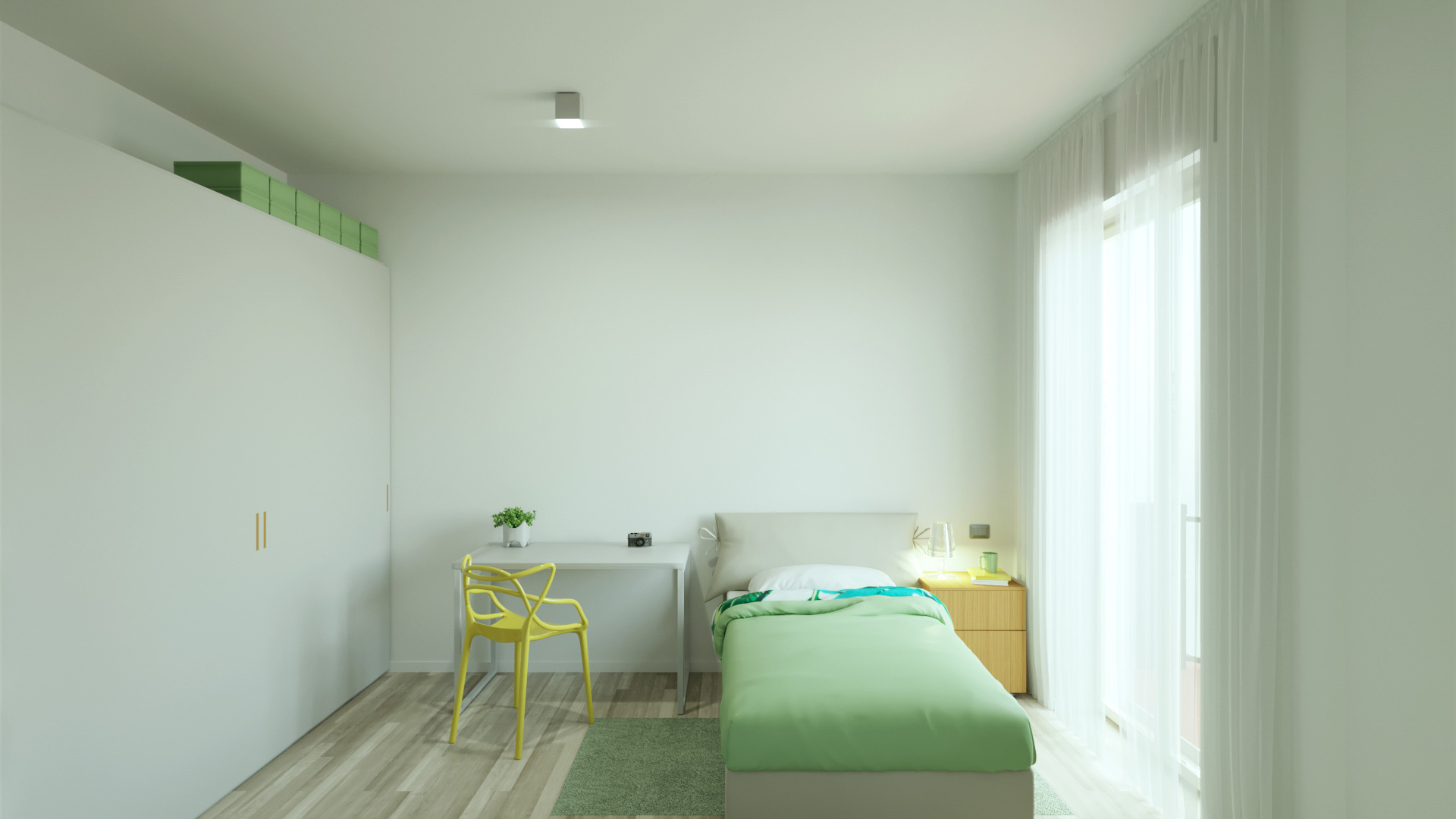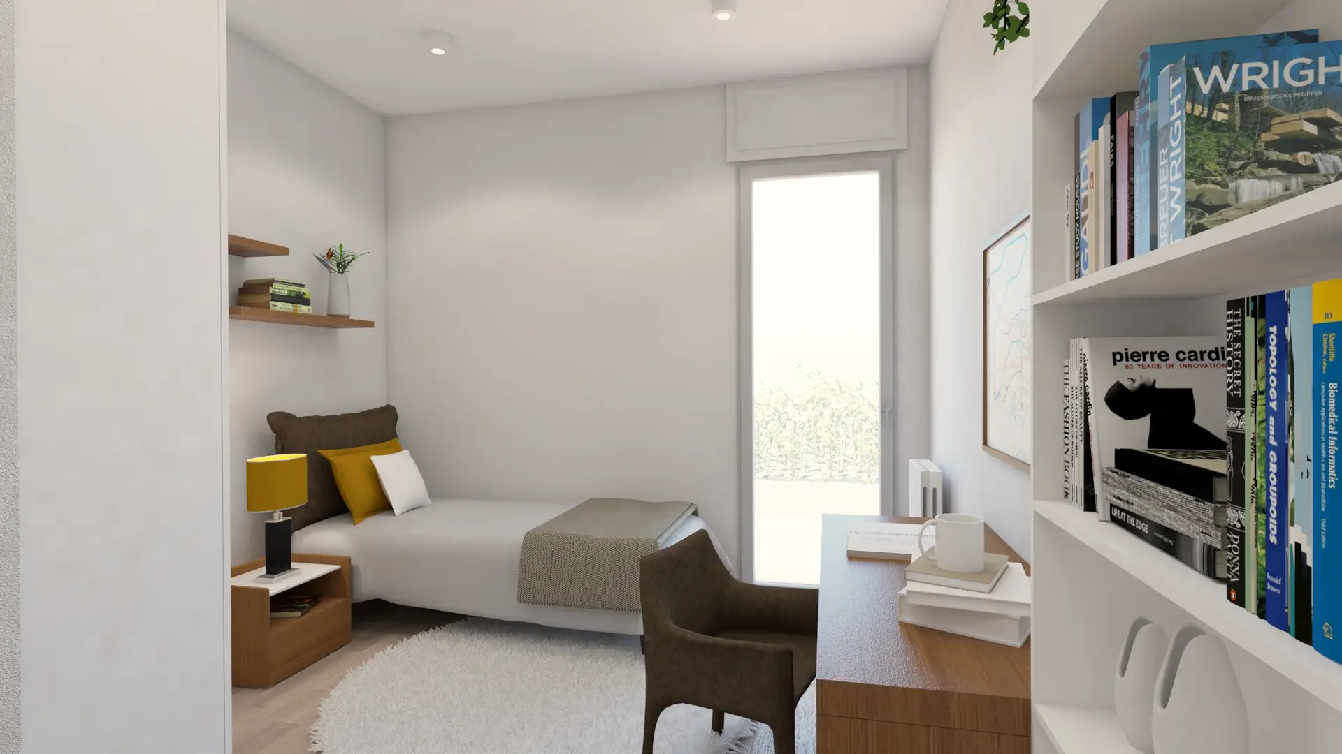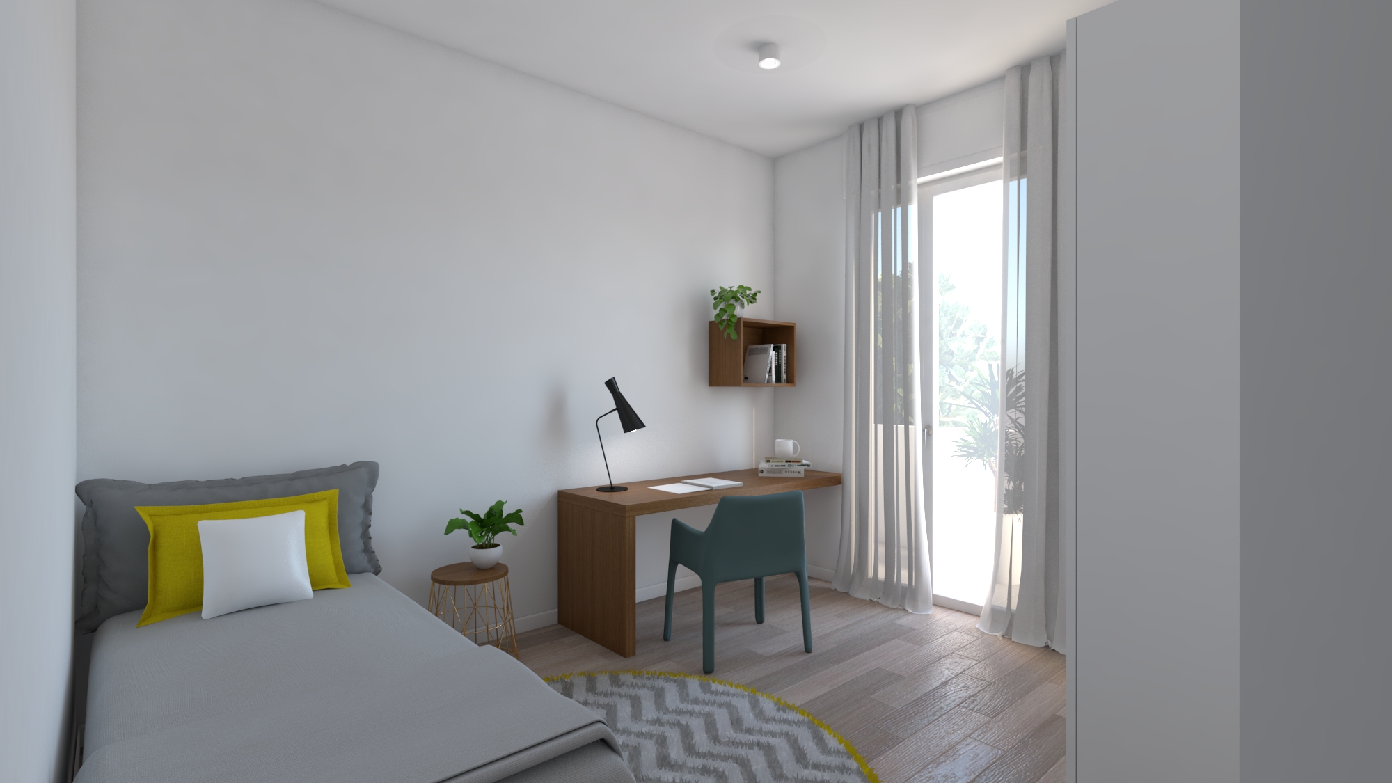 Questo monolocale da mettere a reddito è stato ricavato frazionando un grande quadrilocale in zona universitaria in due unità (questo monolocale e il trilocale che segue). La ristrutturazione completa ha portato alla formazione di due unità indipendenti, che condividono solo un piccolo atrio di disbrigo che consente di accedere ai due portoncini.