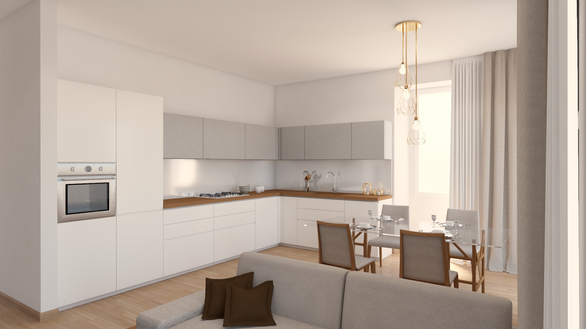 Il progetto ha unificato gli ambienti, reso la vecchia cucina una terza camera e creato un ampio soggiorno con cucina separata, ma non chiusa, in modo da valorizzare l’esposizione est-ovest dell’appartamento.