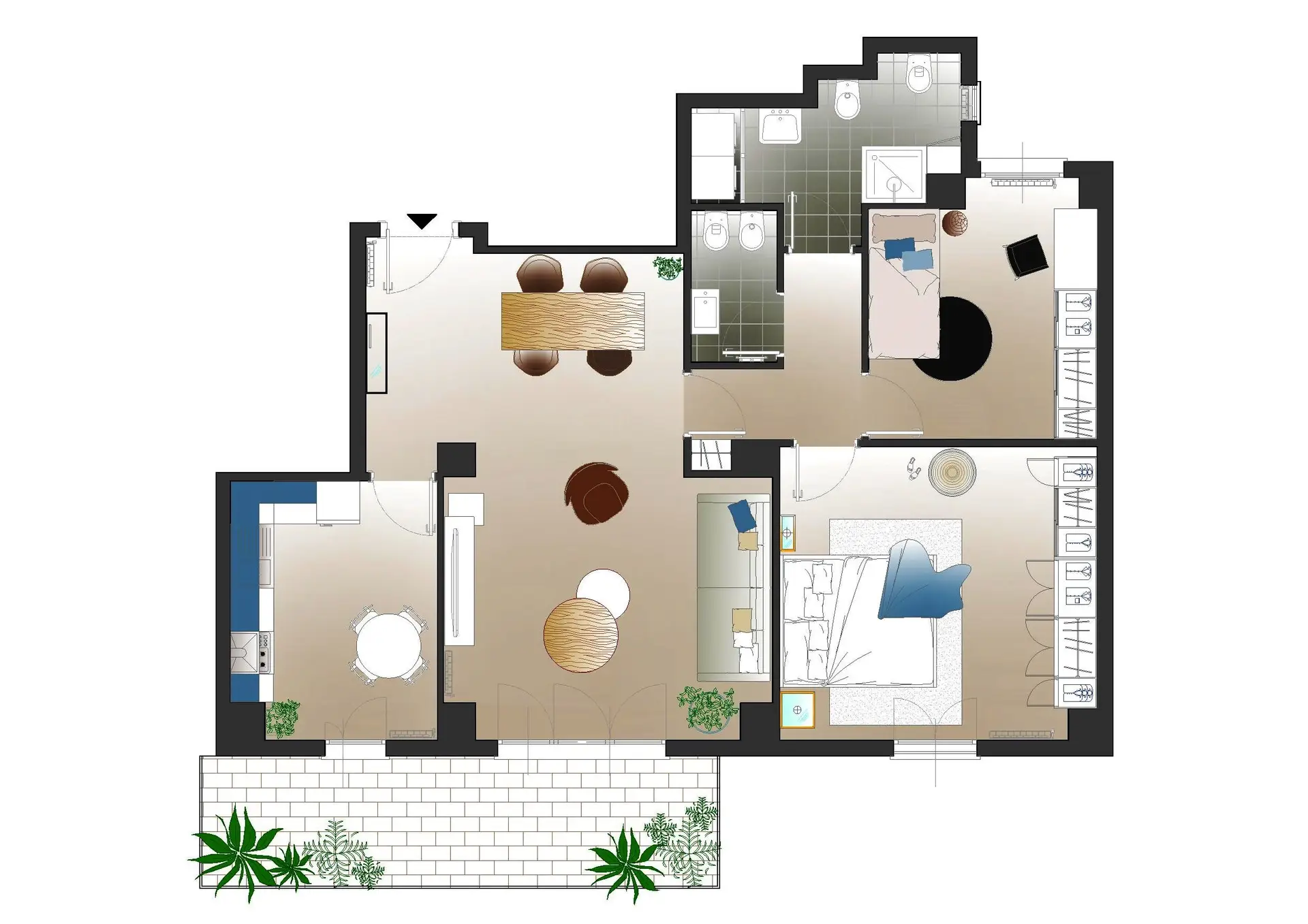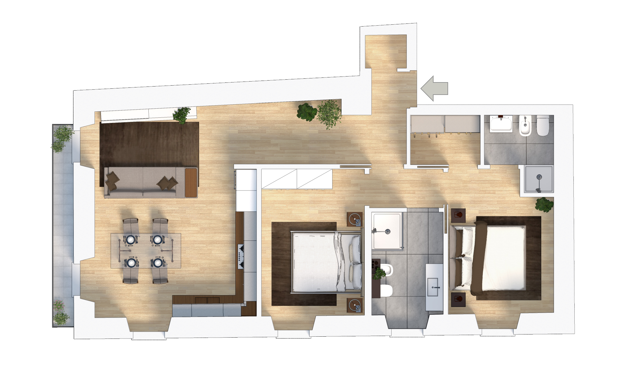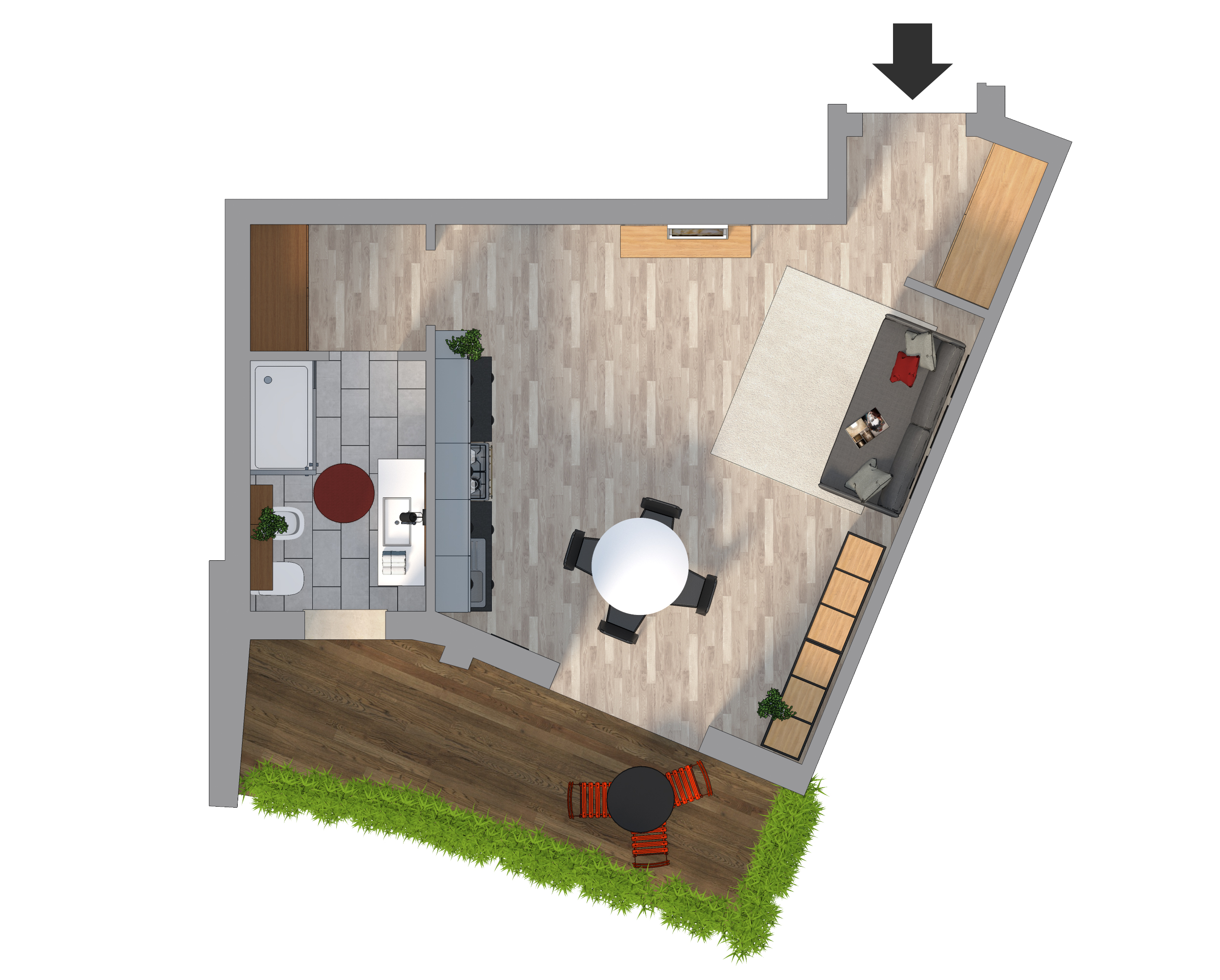 Trilocale dal gusto zen sui tetti di Brescia zona università