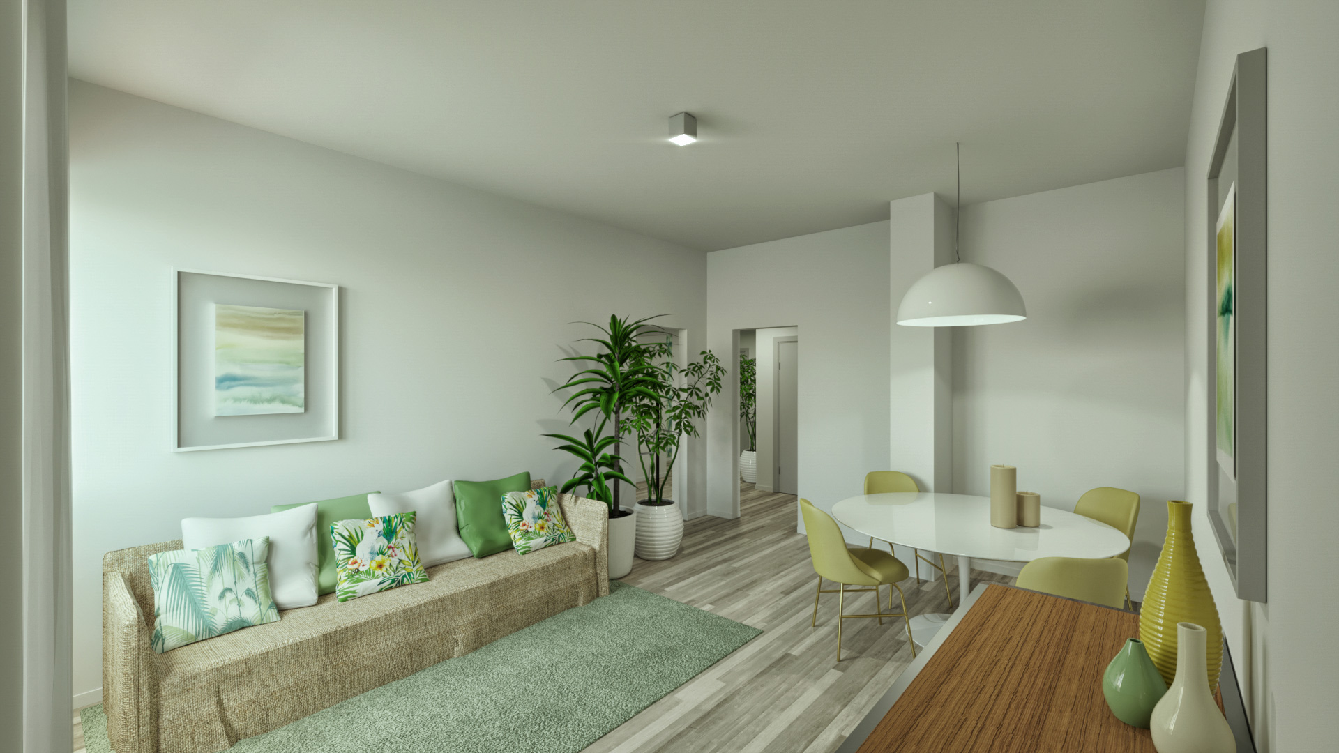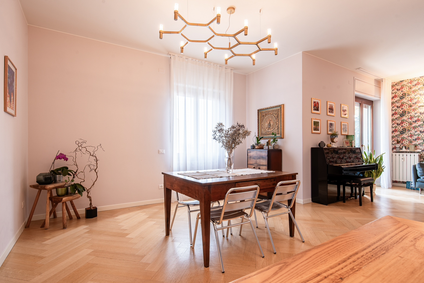 La ristrutturazione leggere di questo trilocale tipico degli anni ’70 gli ha donato carattere e dato un filo conduttore: portare la natura in casa.