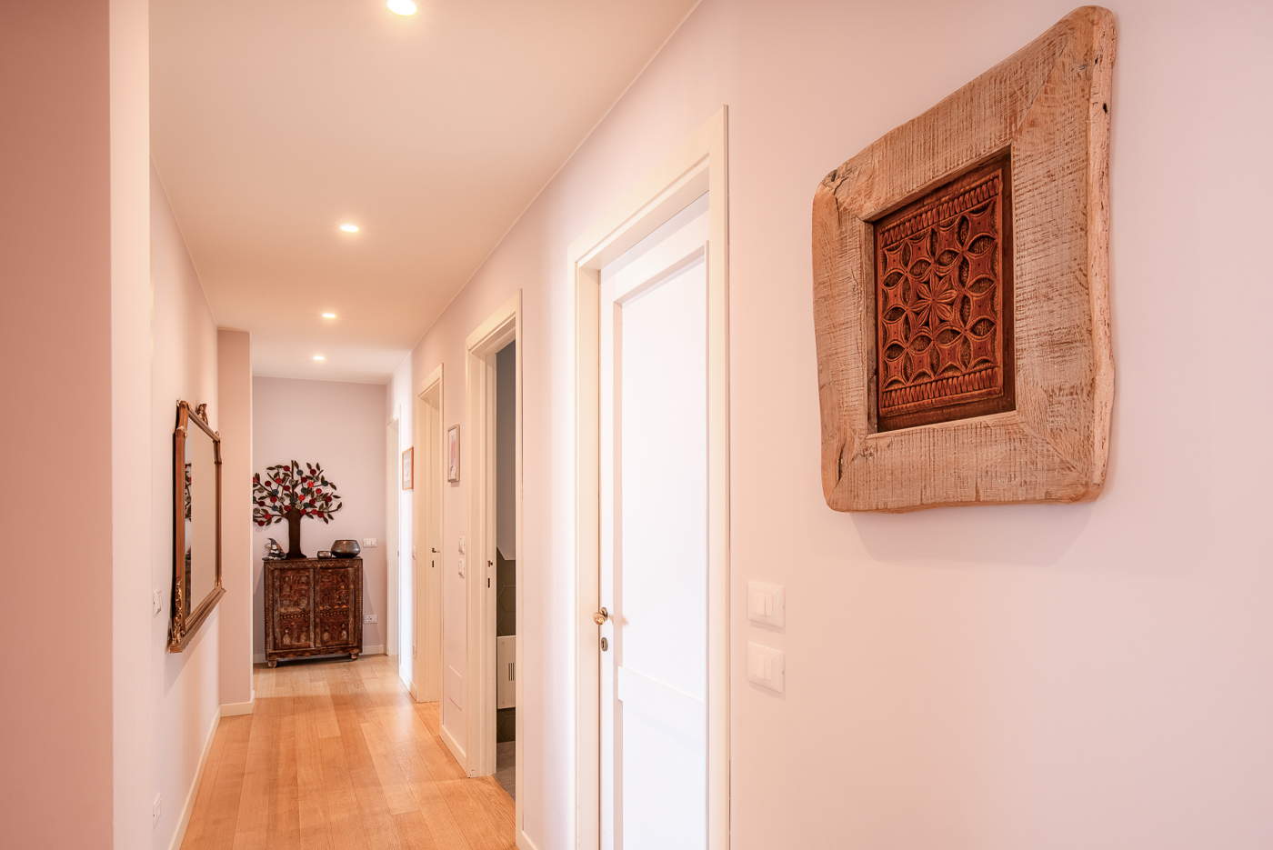 Con toni soft e l’aggiunta di tocchi di luce gli ambienti si trasformano in un rilassante rifugio dalla frenesia della città. Il progetto ha previsto il rifacimento degli impianti, ma mantenendo la distribuzione degli ambienti.